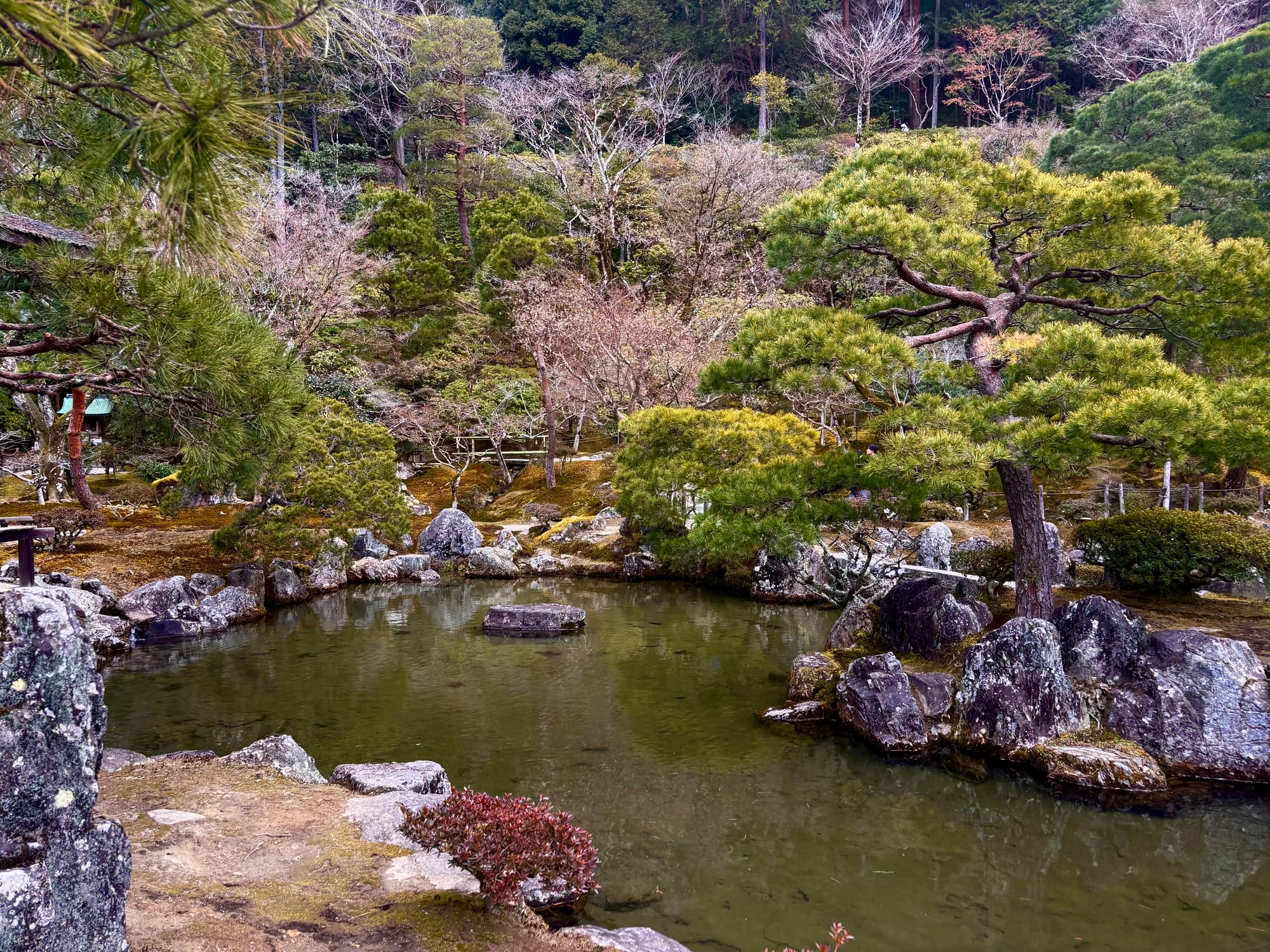 Still, the garden resists this confidence. Fifteen stones, fourteen visible. A remainder. Here Zen insists with 無 (mu, emptiness). What is disclosed is inseparable from what is withheld. Truth is never entire. Seeing is knowing, and yet knowing falters at the edge of sight. The Heart Sutra whispers: 色即是空、空即是色 (shiki soku ze kū, kū soku ze shiki): form is emptiness, emptiness form.
