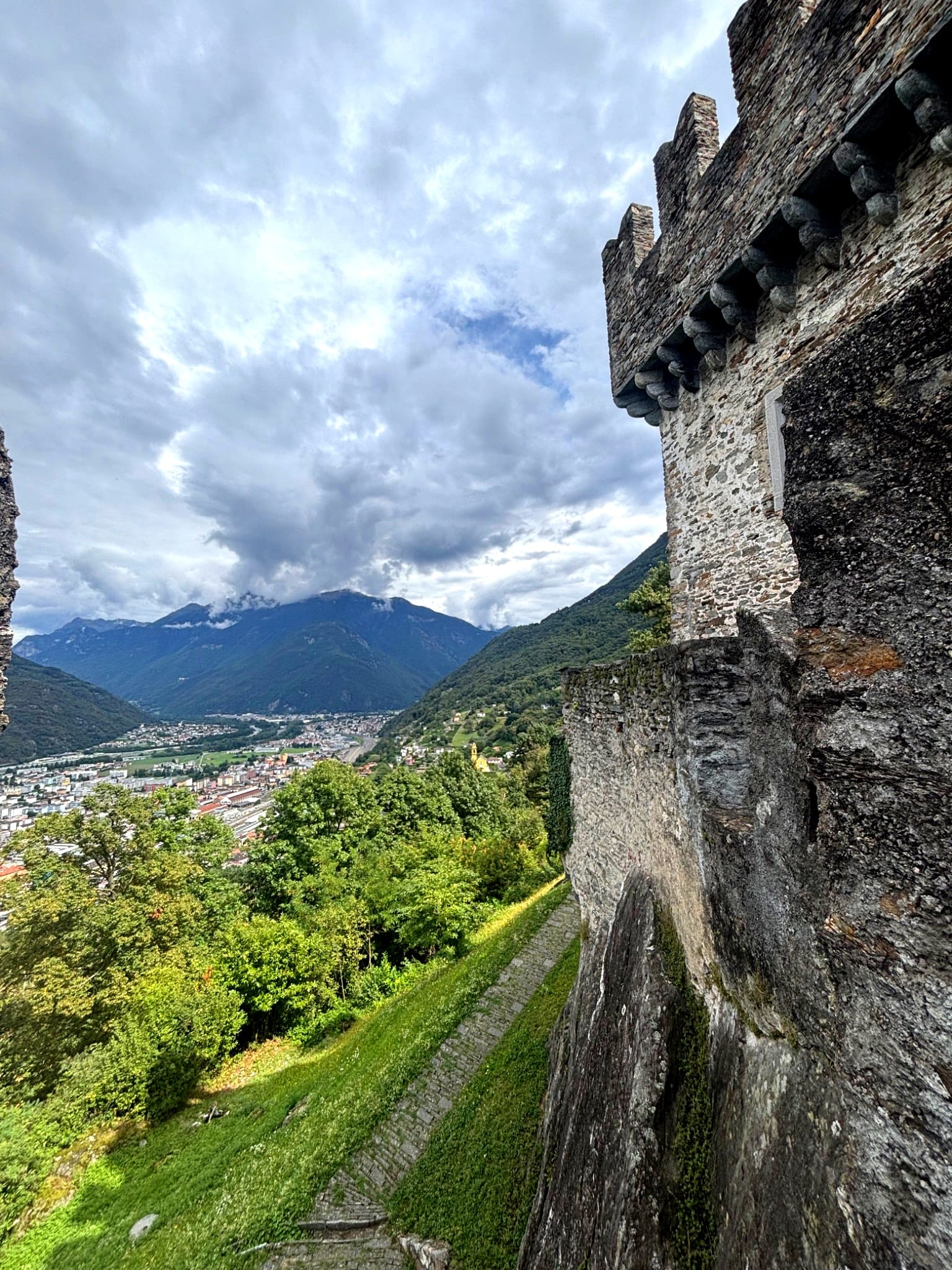 I felt this most on the path up to Sasso Corbaro. The climb was steep, the stones uneven, my breath heavy. At the summit, the view unfolded: mountains layered like a theatre backdrop, the neat geometry of the town below, the trains slipping in and out with clockwork regularity. From here, Bellinzona seemed serene, almost timeless. And yet the body remembered otherwise: my tired legs, the oppressive heat, the prickling awareness that these towers once loomed as threats. Ricoeur insists that memory is not only collective but embodied: carried in gestures, sensations, fragments of lived experience. Standing at that height, my own body became an archive of effort and unease, reminding me that memory is always personal as well as monumental