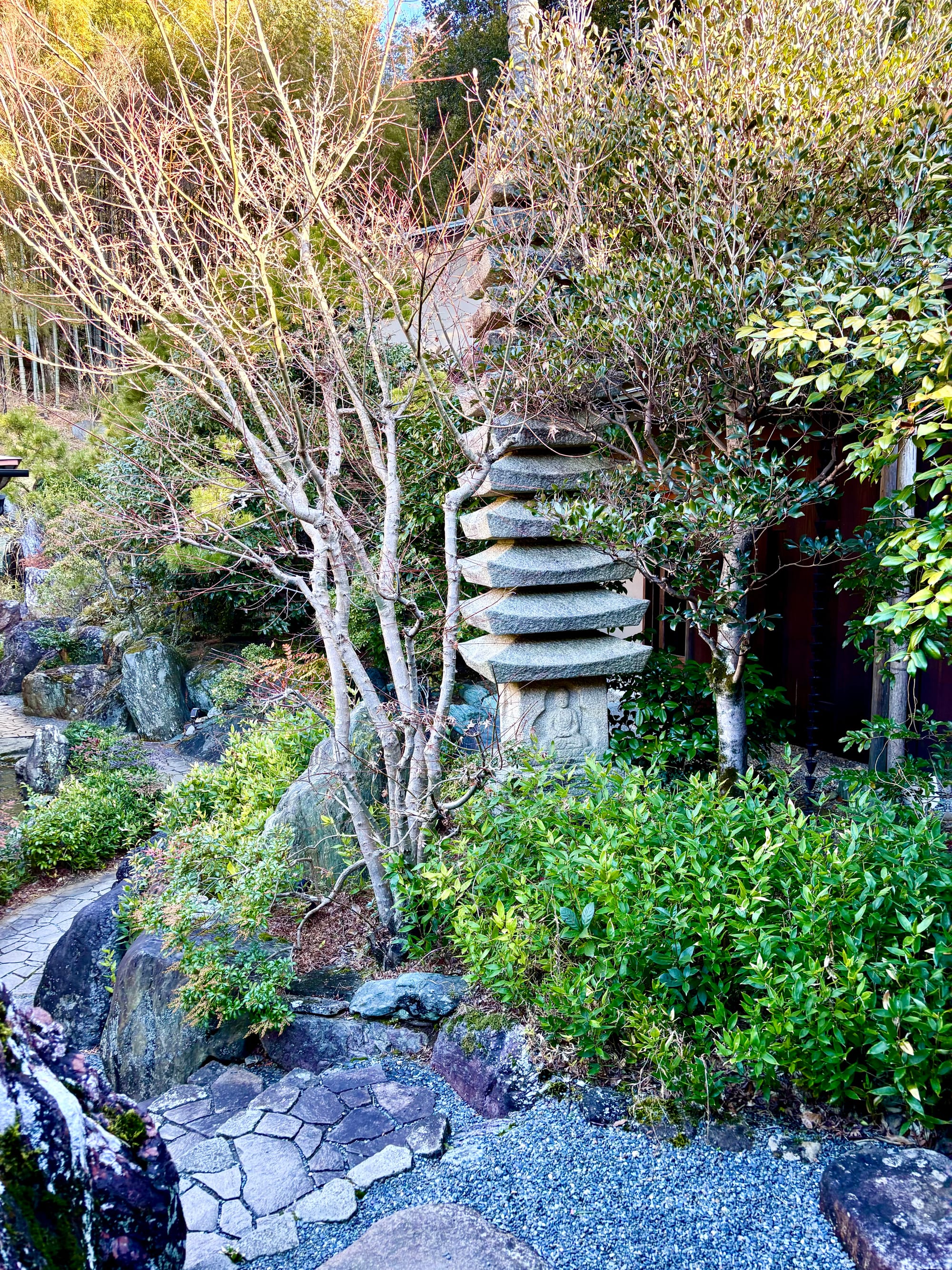 At Shuzenji, the temple precincts fold inward. Wooden beams are blackened with incense, chanting rises and falls like breath, and the river glides past, indifferent. Buddhism here whispers of impermanence that the self and its desires dissolve like smoke. To sit in the hush is to feel that nothing endures.